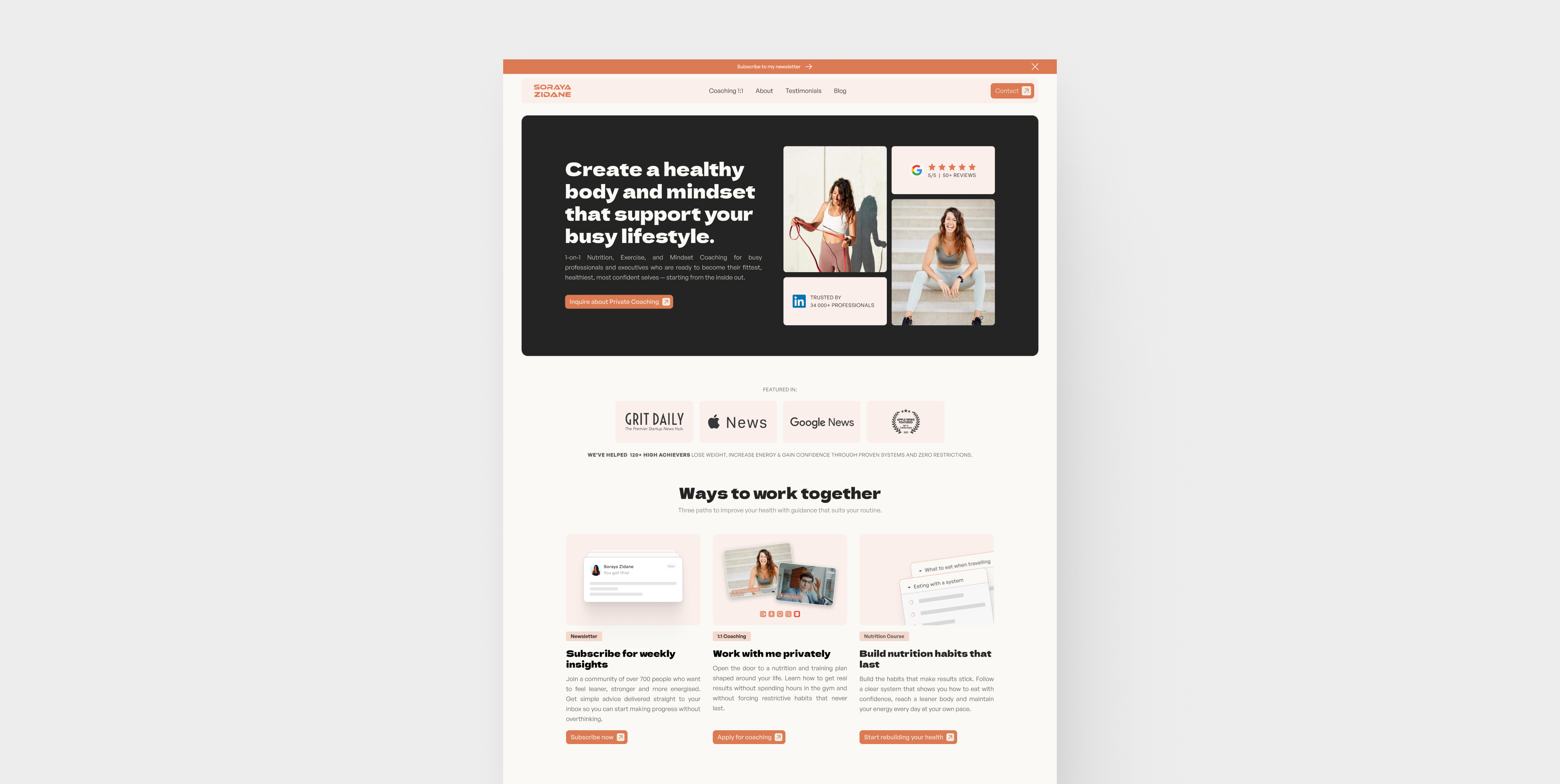 It helps turn LinkedIn traffic into qualified interest through a more intentional structure, with dedicated coaching pages, stronger trust signals, newsletter capture, and a CMS built for future content and SEO.